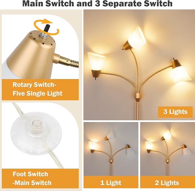About This Three Adjustable Gooseneck Arms: This modern floor lamp features three 360° adjustable gooseneck arms, providing great lighting flexibility....