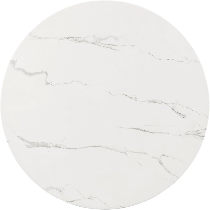 About This Pu Leather Elegant Faux Marble Design: Our round dining table boasts a glossy and sleek faux marble top,...