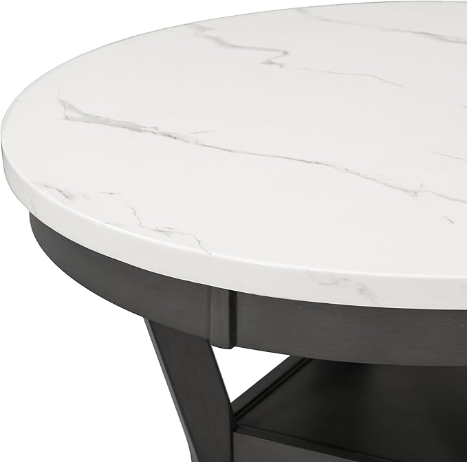 About This Pu Leather Sleek Faux Marble Tabletop: Elevate your dining experience with our elegantly-patterned Faux Marble Round Dining Table....