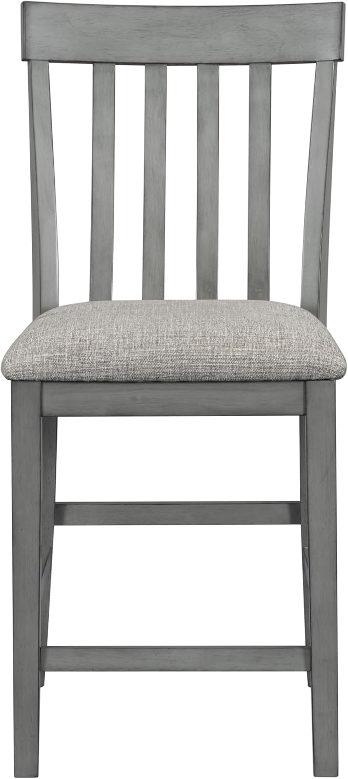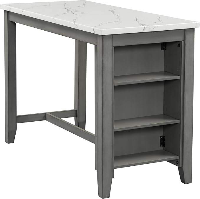 5-Piece Wooden Counter Height Dining Table Set with Faux Marble Veneer and Built-in Storage Shelves, 2 Upholstered Chairs and 2 Barstools, for Kitchen, Breakfast Nook, Bar, Living Room, Gray