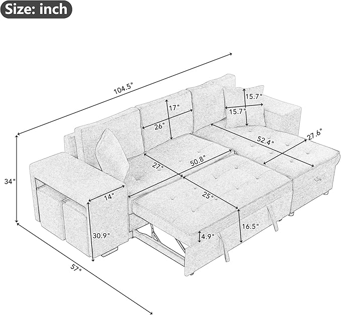 About This Chenille Convertible Sleeper Sectional Sofa Pull Out Bed⚡Eafurn sectional sofa includes 2 seats sofa with pulled out bed...
