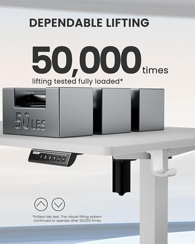 About This Outstanding Stability: This electric standing desk has a sturdy solid steel frame with aerospace-grade lifting column connectors (still...