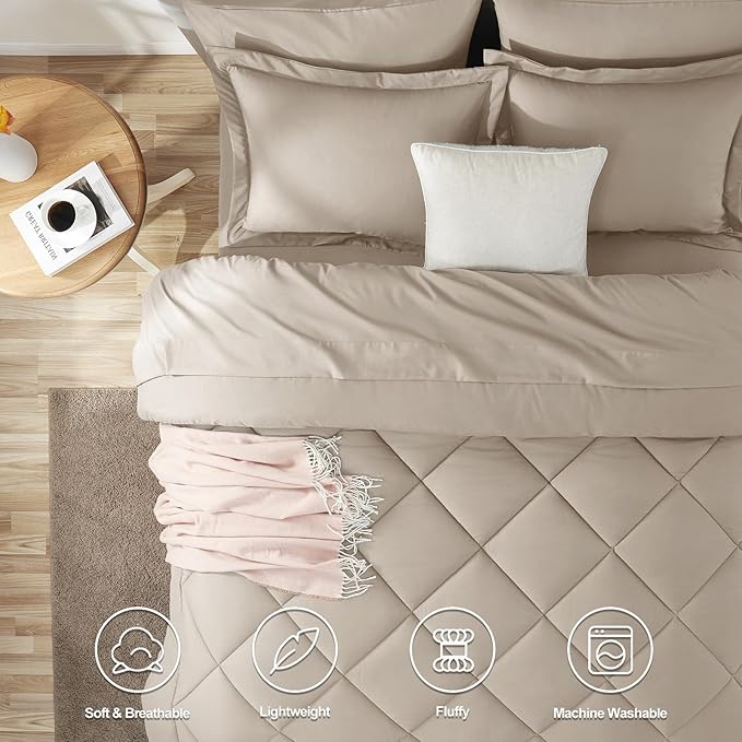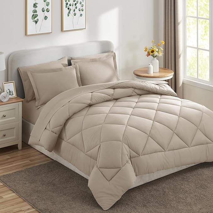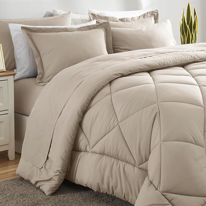 CozyLux Full Comforter Set with Sheets 7 Pieces Bed in a Bag Oatmeal All Season Bedding Sets with Comforter, Pillow Shams, Flat Sheet, Fitted Sheet and Pillowcases