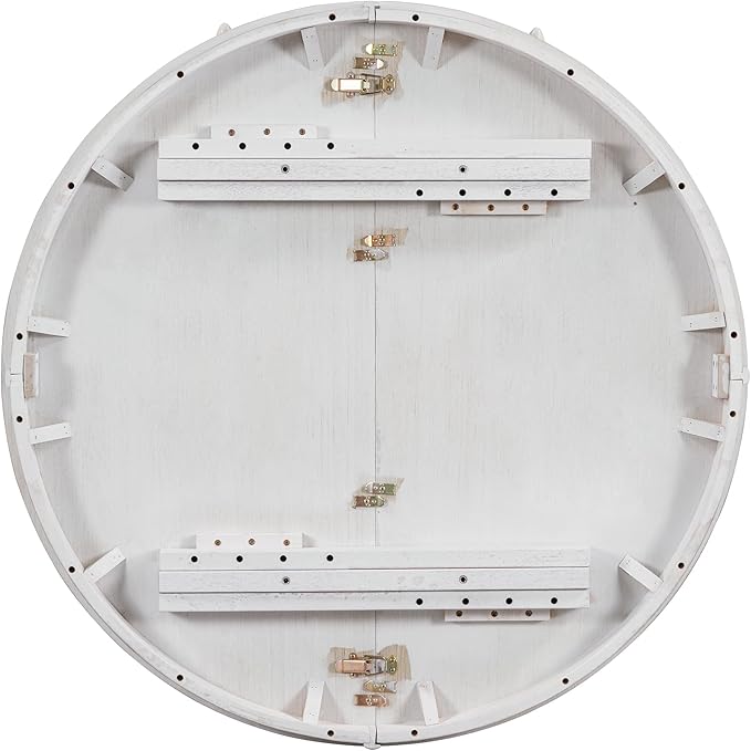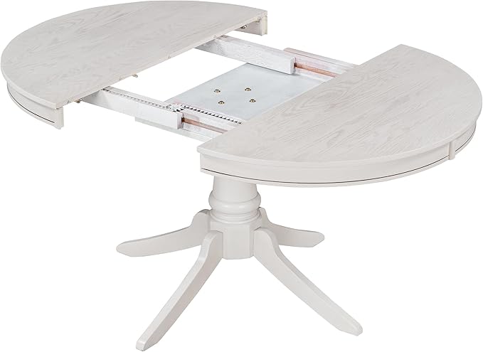 5-Piece Wooden Round Extendable Dining Table and 4 Upholstered Chairs Set for Kitchen Living Room, Retro Style, Antique White, 42"-58" L x 42" W x 30" H