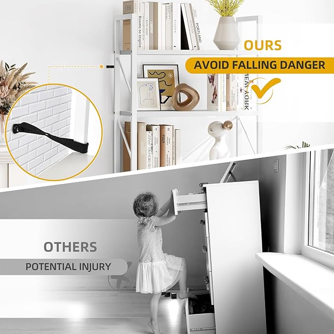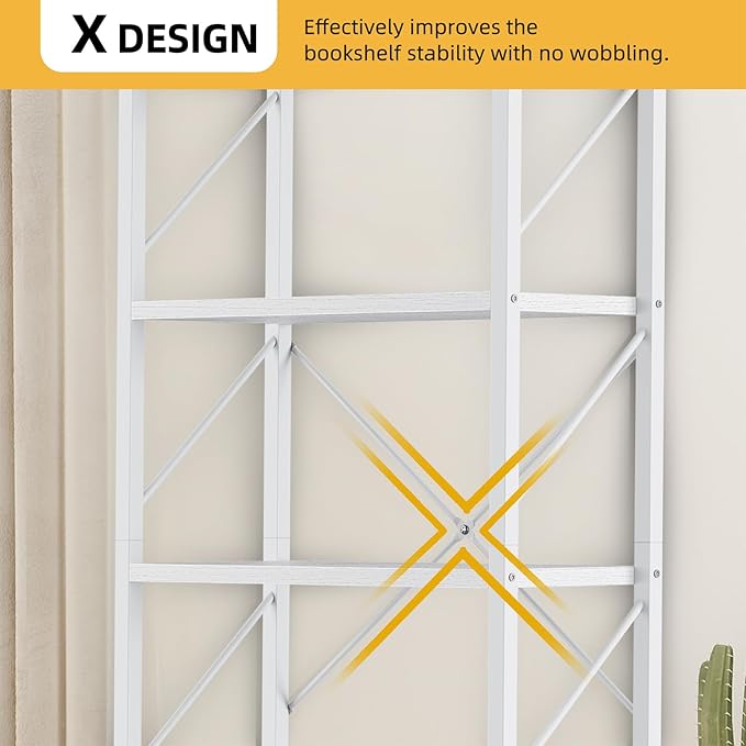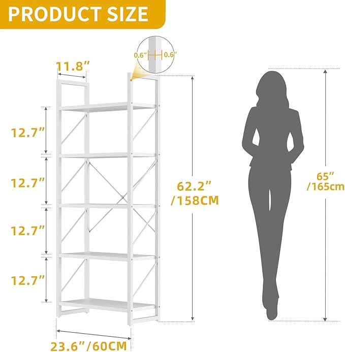DWVO 5 Tier Bookshelf, White Book Shelf Modern Bookcase, Display Rack Book Storage Organizer for CD/Movie/Book, Bookshelves for Bedroom Office Living Room, White