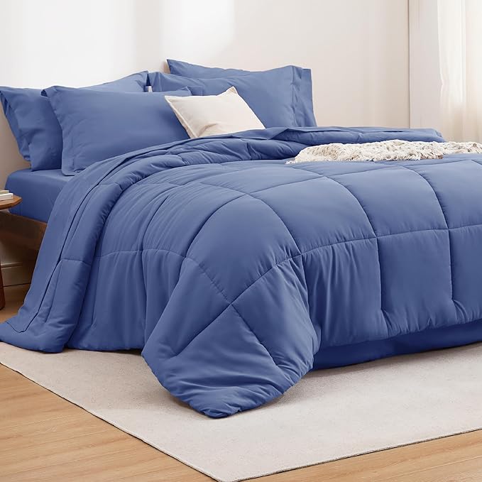 Bedsure Infinity Blue Twin Comforter Set - 5 Pieces Solid Twin Bed in a Bag, Twin Bed Set Infinity Blue with Comforters, Sheets, Pillowcase & Sham