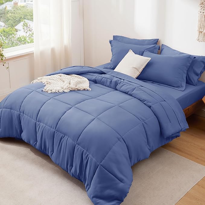 Bedsure Infinity Blue King Size Comforter Set - 7 Pieces Solid King Bed in a Bag, King Bed Set Infinity Blue with Comforters, Sheets, Pillowcases & Shams