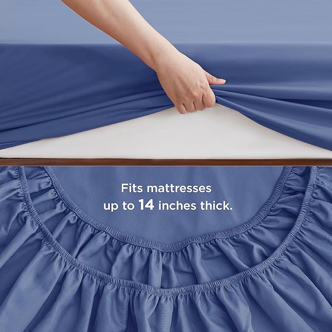 Bedsure Infinity Blue Queen Comforter Set - 7 Pieces Solid Queen Bed in a Bag, Queen Bed Set Infinity Blue with Comforters, Sheets, Pillowcases & Shams