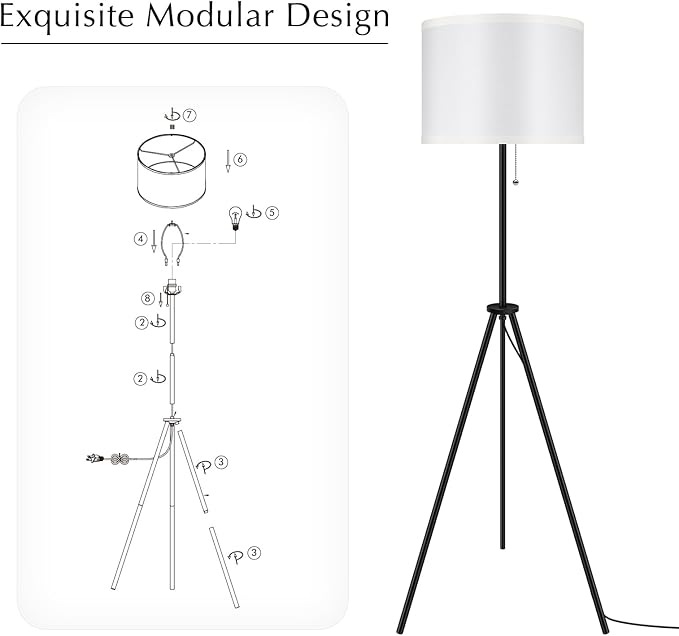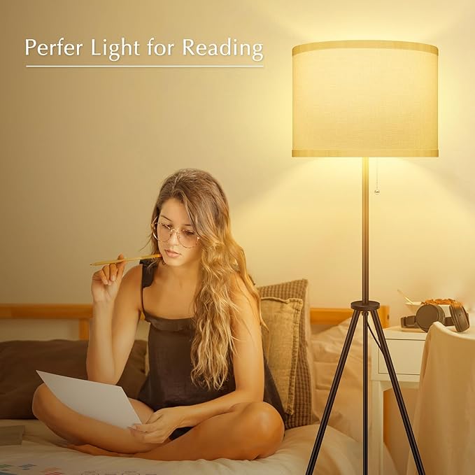 About This [Tripod Floor Lamp]The fabric tripod floor lamp has a middle century tripod lamp shape, retro linen lampshade and...