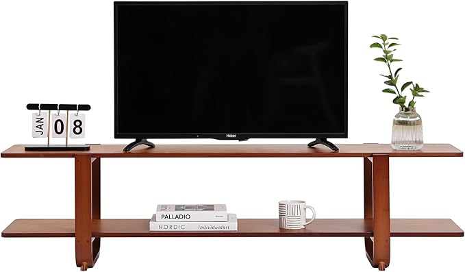 Tiita TV Stand with Storage for TVs up to 65'', Bamboo TV Console Entertainment Center with 2 Open Shelf, Mid Century Modern Media Console for Living Room, Bedroom, Walnut