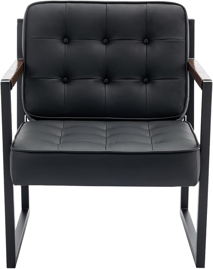 COLAMY Modern Black Leather Accent Chair, Comfy Living Room Chairs, Faux Leather Reception Armchair with Metal Legs for Living Room Bedroom Reception Waiting Room, Black