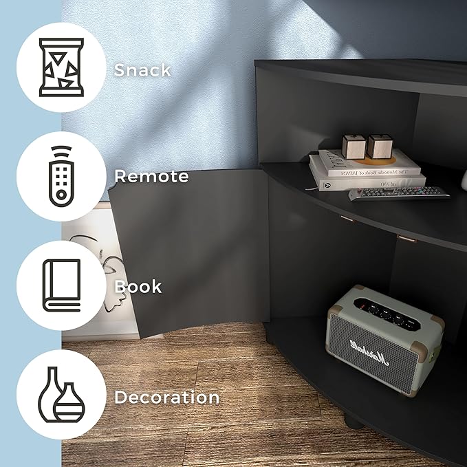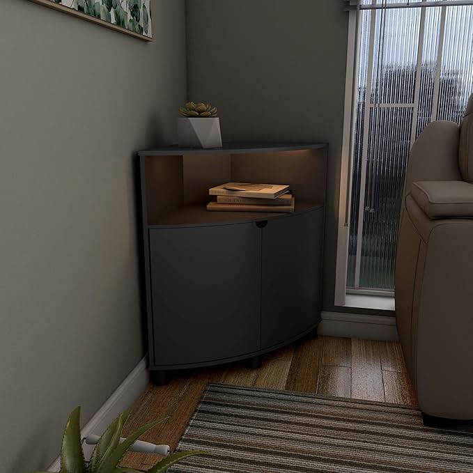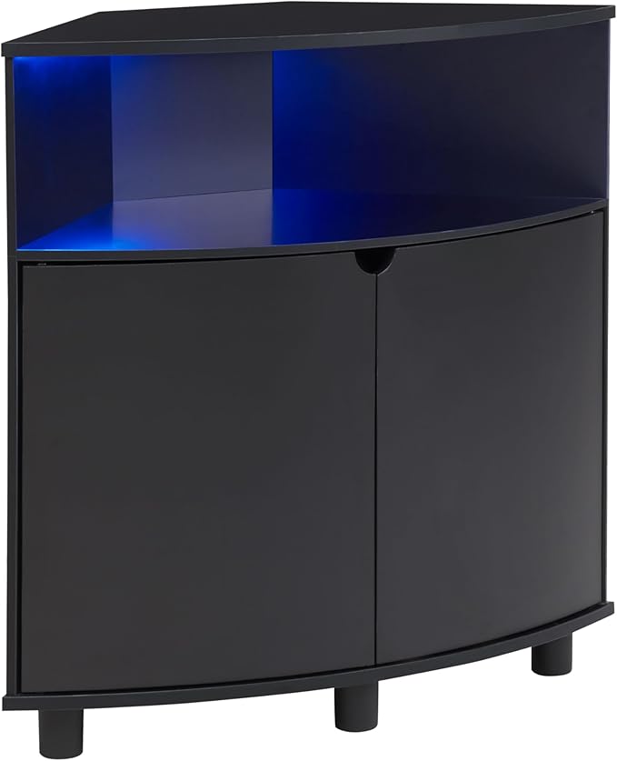 Berg Modern 31-inch 16 Colors LED Corner Cabinet with Doors and 2 Shelves, USB Charge Cord, Small TV Stand for Living Room, Home Office, Black Pure