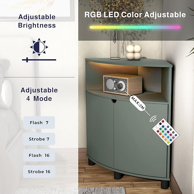 Berg Modern 31-inch 16 Colors LED Corner Cabinet with Doors and 2 Shelves, USB Charge Cord, Small TV Stand for Living Room, Home Office, Sage Green