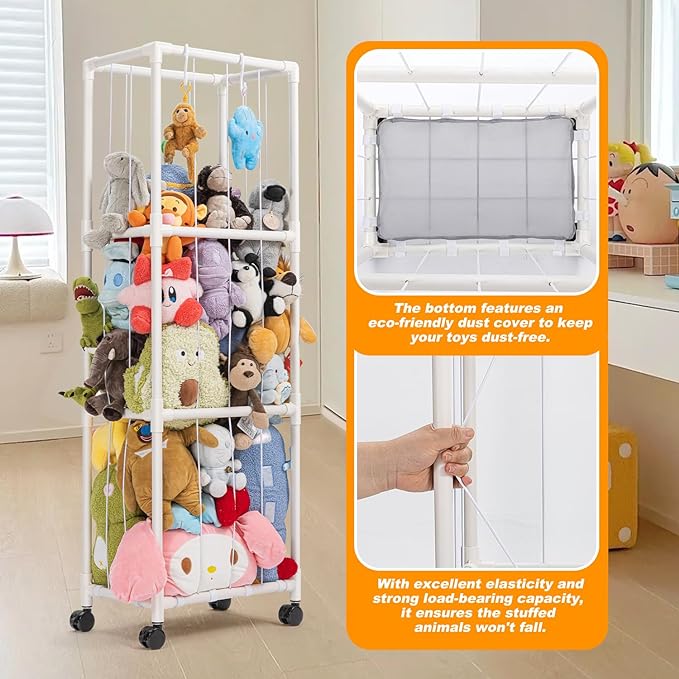Stuffed Animal Zoo Storage, Extra Large Stuffed Animal Holder with Dust Cloth and Universal Wheels, Toy Storage Organizer, Plush Storage Organizer Shelf for Birthday Gift, Nursery Play Room Bedroom