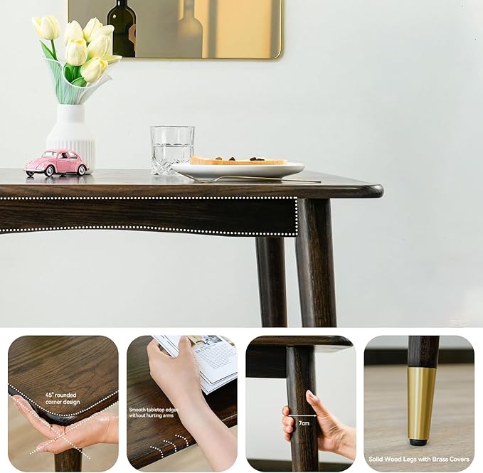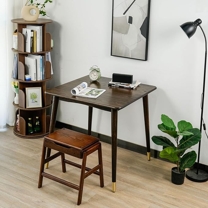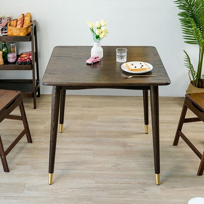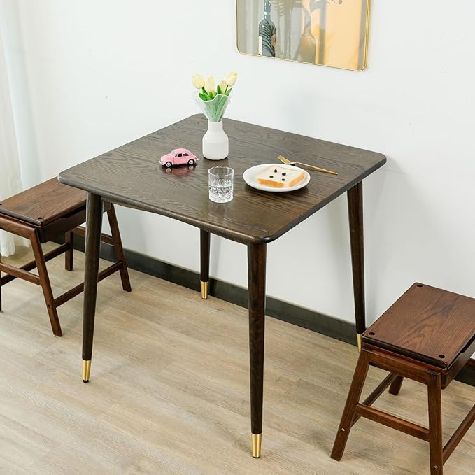 Dining Table 31.5“, Square Small Solid Wood Kitchen Table with Copper Decor for 2, Mid Century Modern Kitchen Dining Table, Oak Finish, Walnut, 31.5 x 31.5 x 29.5 Inch, Walnut