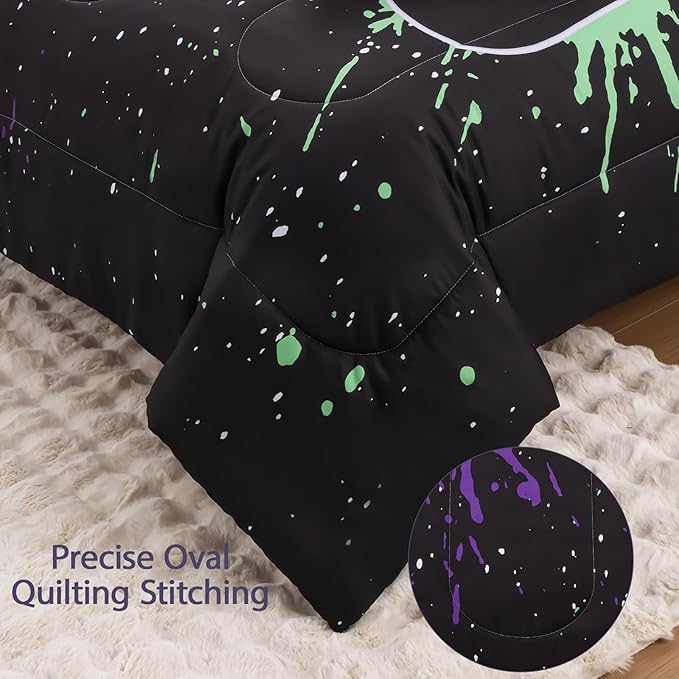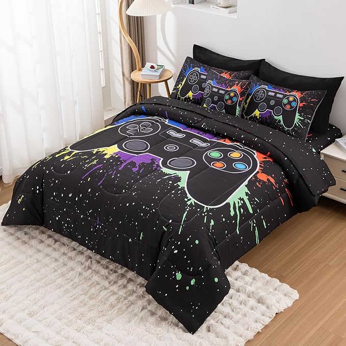 About This 🎮[Game Controller Design]: 3D video game controller comforter with rainbow splatter colors, making it a piece of artistic...