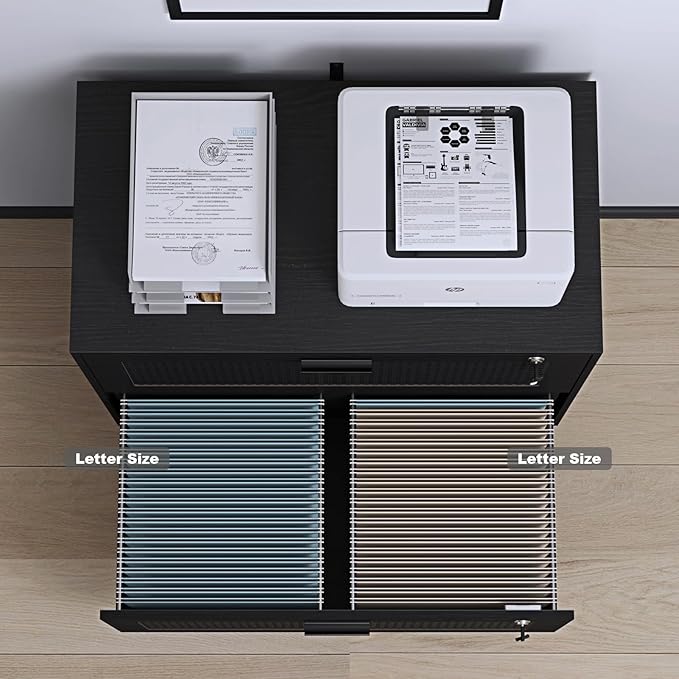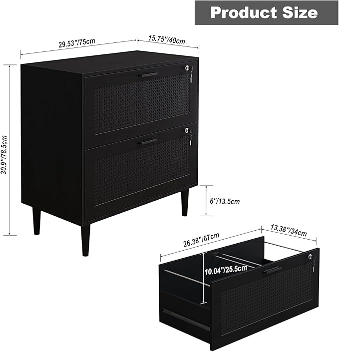 About This 【Large Storage Space】This lateral file cabinet comes with 2 large drawers, in which you can hang files in...