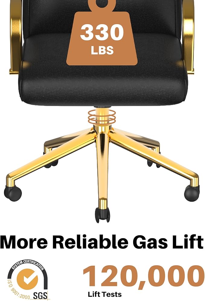 Black and Gold Office Chair, High Back Office Chair for Women, Modern Desk Chair Comfy with Arms, Leather Executive Office Chair with Wheels