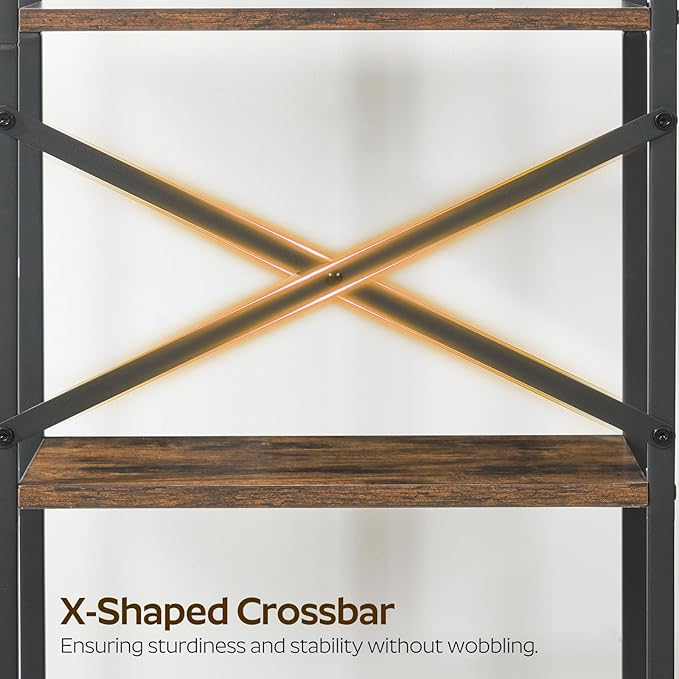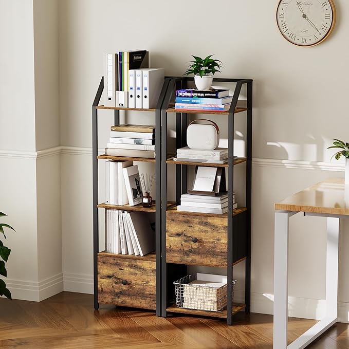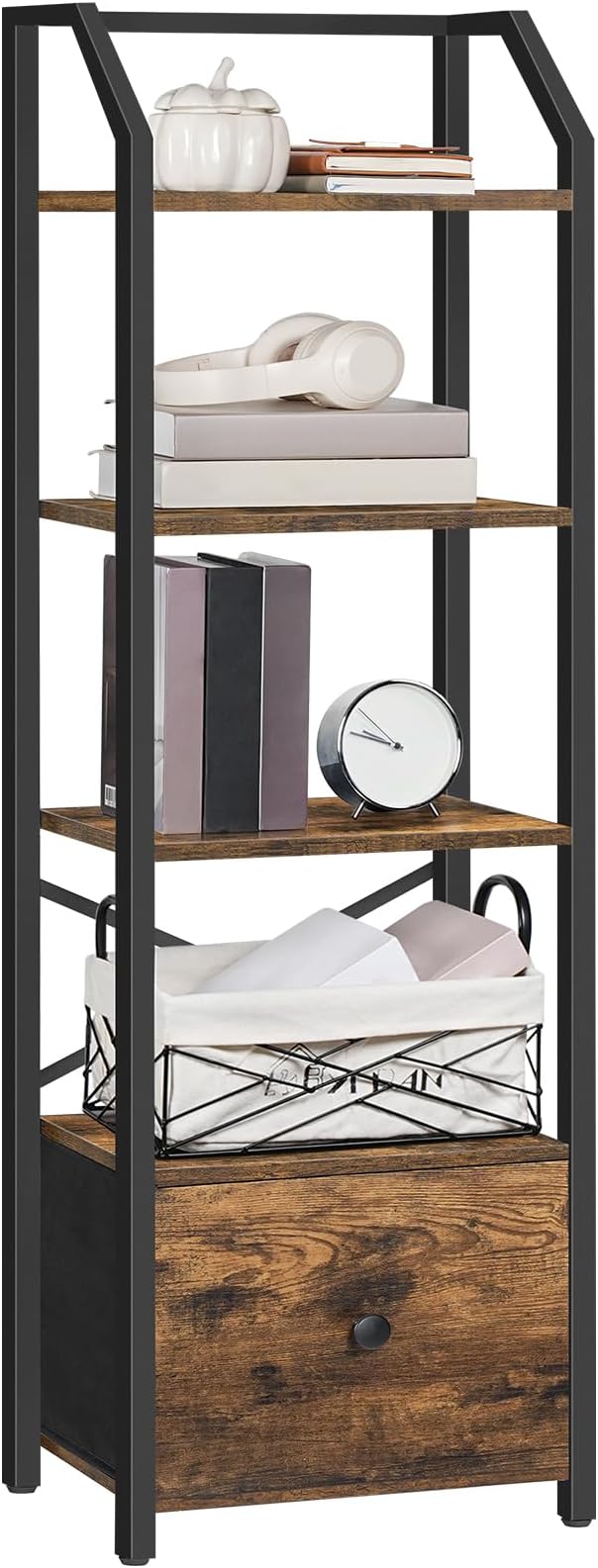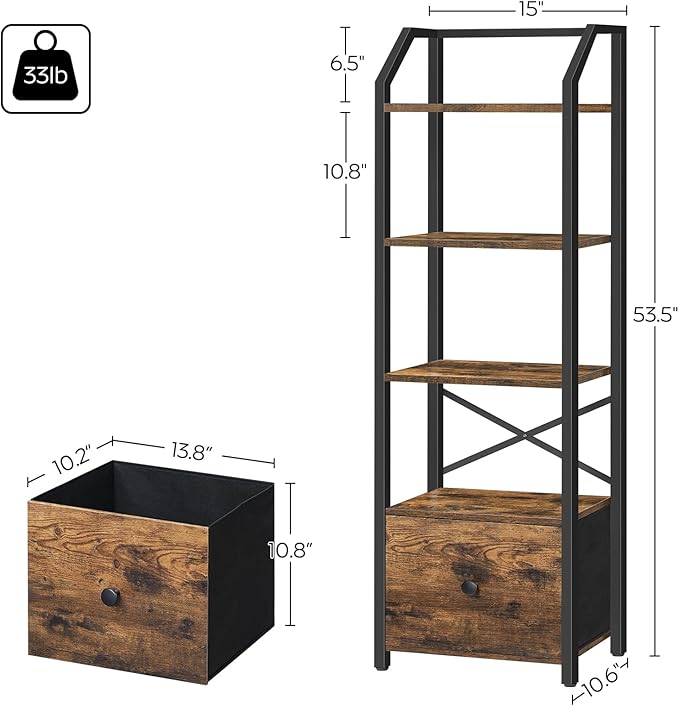 5 Tier Bookshelf, Book Shelf with Removable Drawer, Tall Narrow Bookcase with Shelves, Standing Display Shelf, Storage Organizer, for Bedroom, Home Office, Rustic Brown and Black SJ05BR