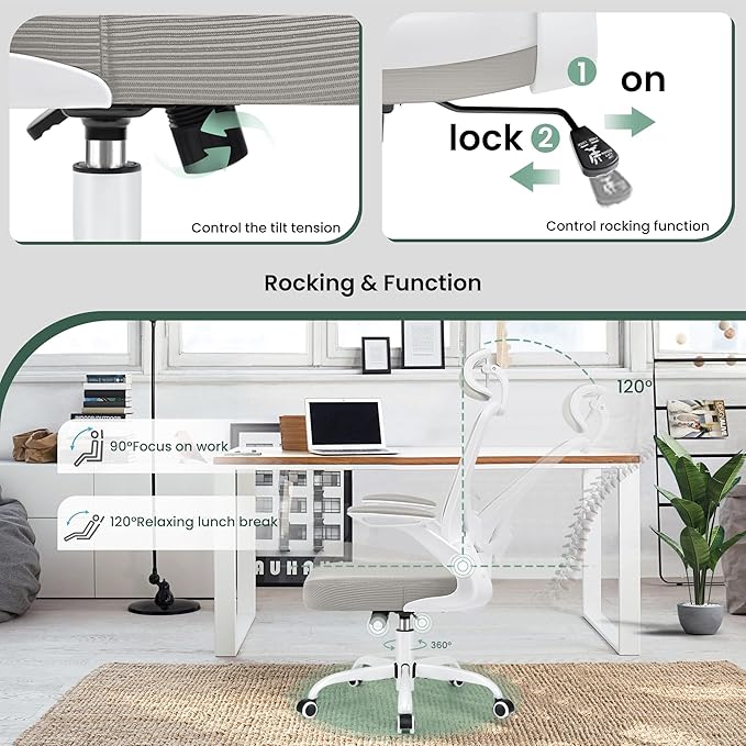 KERDOM Ergonomic Office Chair, Breathable Mesh Desk Chair, Lumbar Support Computer Chair with Headrest and Flip-up Arms, Swivel Task Chair, Adjustable Height Gaming Chair, LightGray