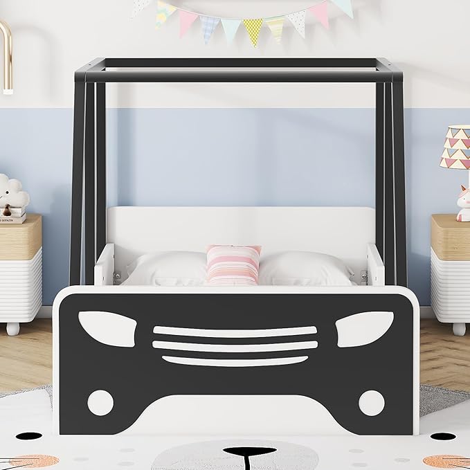 About This 🚗【Car Shape Playful Space】This twin bed frame for kids featuring a car-shaped design, which not only makes the...