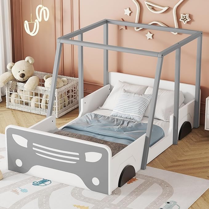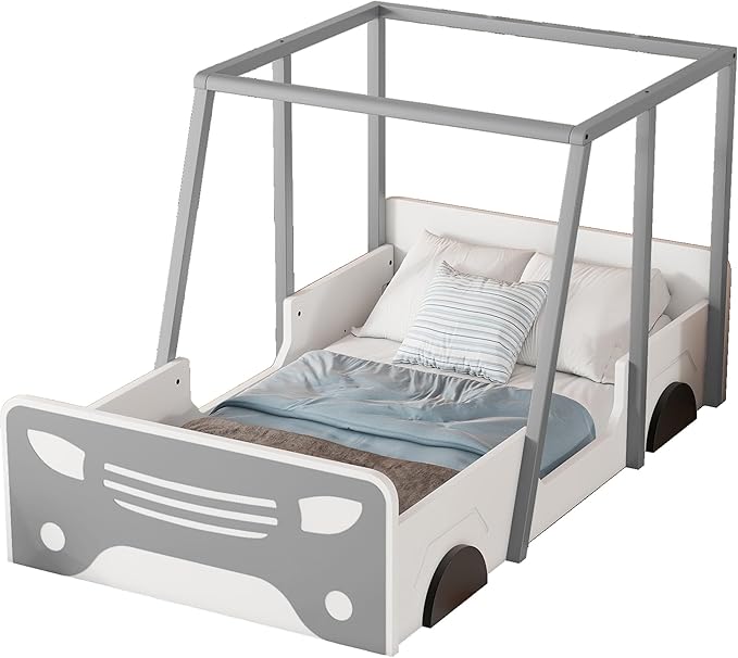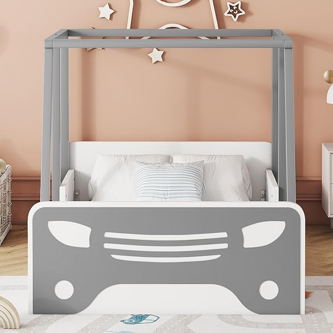 About This 🚗【Car Shape Playful Space】This twin bed frame for kids featuring a car-shaped design, which not only makes the...