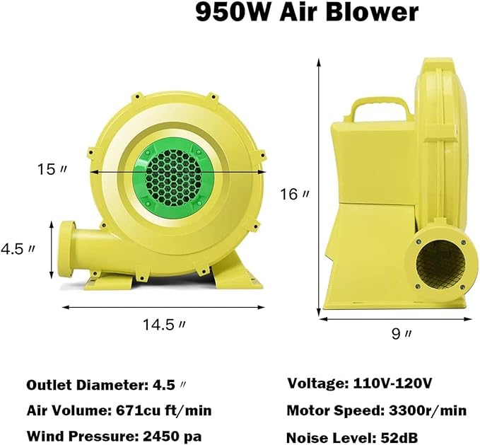 COSTWAY Bounce House Blower for Inflatable Bounce House Bouncy Castle,Yellow/Green