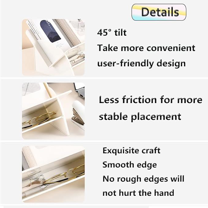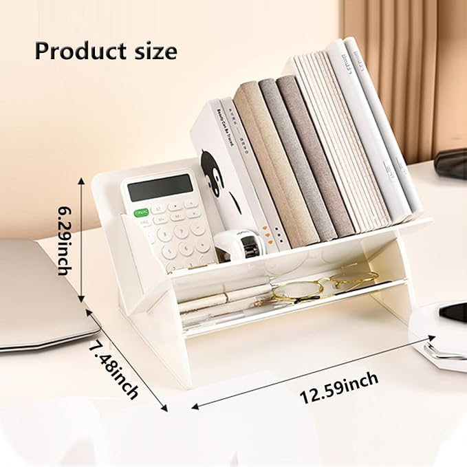 Acrylic Desktop Bookshelf, Detachable Bookcase, Clear Book Organizer, Book/CD/Magazine Rack for Office/Study Room Library/Home (White, 12.6")