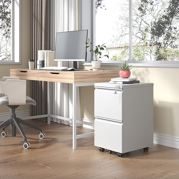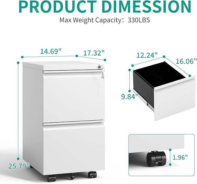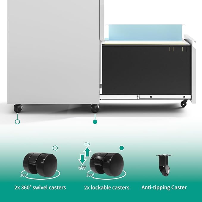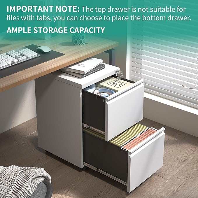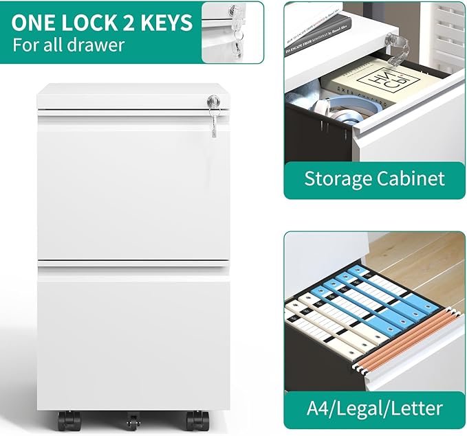 About This ✦【Locking Filing Cabinet 2 drawer】This under desk file cabinet with wheels has a handy lock system that uses...