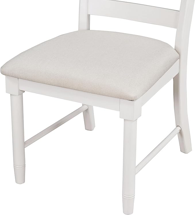 5-Piece Dining, Vintage Round Wood Extendable Table Set with 4 Cushioned Chairs for 4, for Living Kitchen Room, Antique White