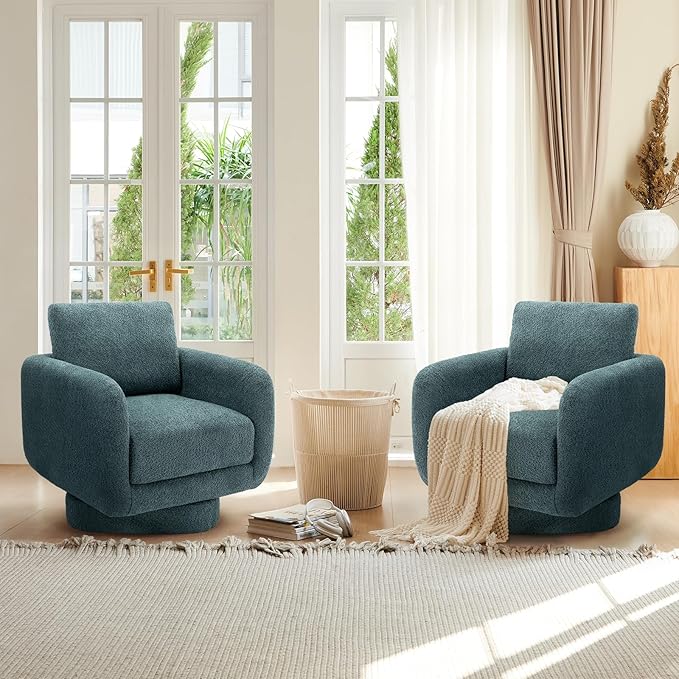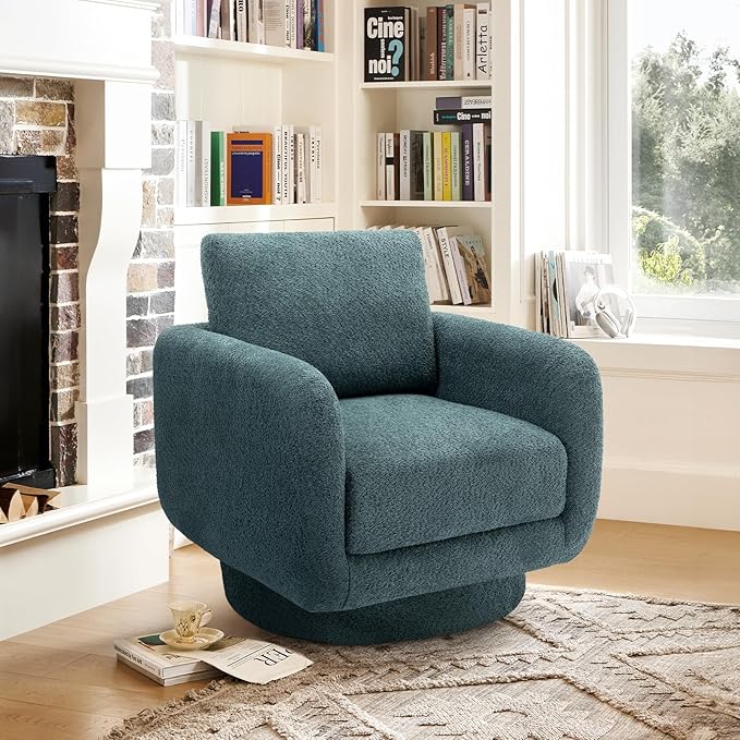 COLAMY Swivel Accent Chairs for Living Room, 32Inches Wide Upholstered Armchair with Plush Back Pillow, Modern Sofa Corner Barrel Chair for Nursery/Living Room/Bedroom-Teal