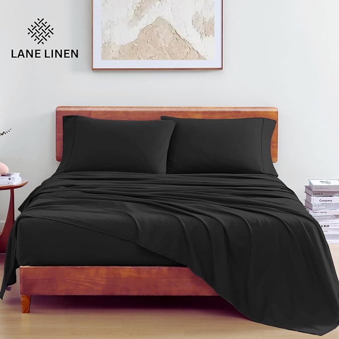 LANE LINEN RV Queen Size Sheets Set, 100% Organic Cotton Sheet Set, 4 PC Short Queen Sheets, Percale Weave, Cooling Sheets, Hotel Quality RV Queen Size Deep Pocket Sheet Sets, Oeko-Tex Sheets - Black