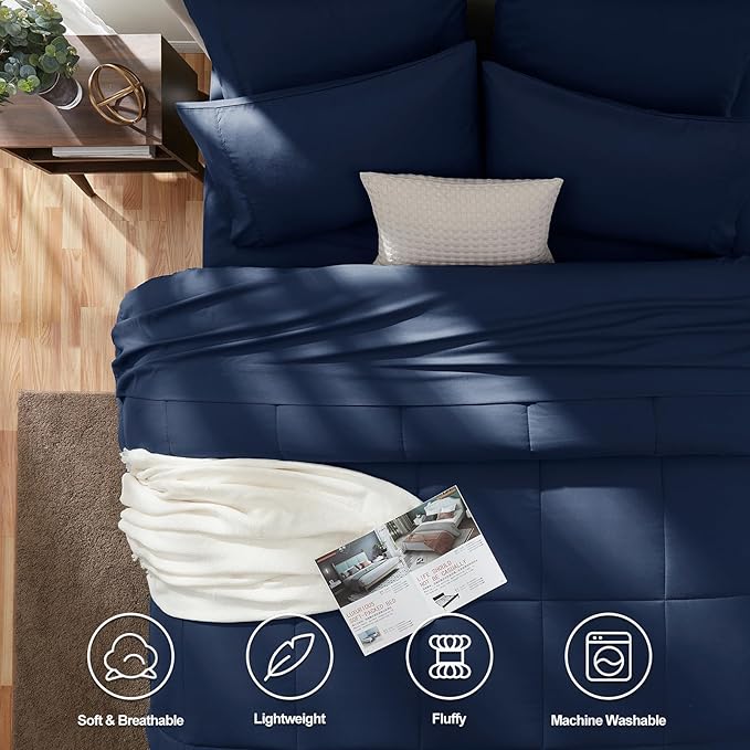 CozyLux Full Size Comforter Sets - 7 Pieces Bed in a Bag Set Navy Blue Full, Complete Bedding Sets Bed Set for All Season with Comforter, Flat Sheets, Fitted Sheet, Pillowcases & Shams