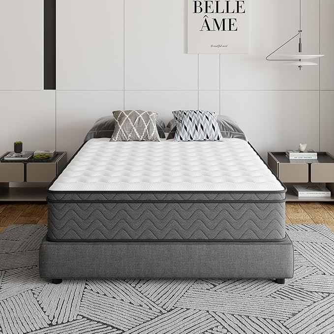 King Mattress, 12 Inch Innerspring Hybrid Mattress in a Box, Individually Pocket Coils for Motion Isolation & Cool Sleep, Queen Bed for Back Pain,CertiPUR-US,100 Nights Trial