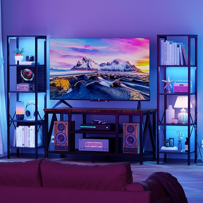 About This [LED Lights Bookshelf]: Our tall black bookcase is equipped with LED strips, multiple colors can be adjusted, both...