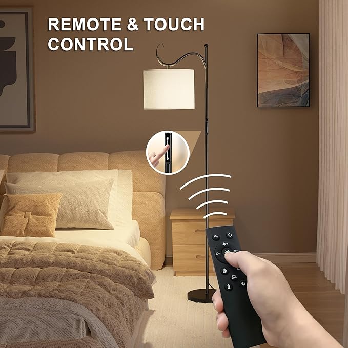 Dimmable Floor Lamp with Remote, Adjustable Floor Lamps for Reading, 12W LED Modern Standing Lamp Arched, Tall Floor Lamps for Living Room, Touch Control, 1200LM Super Bright