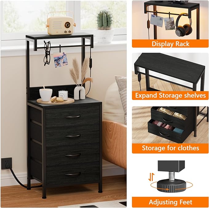 About This 【Tall Nightstand Set of 2】This nightstand with 4 drawers, which can meet all you storage needs. 2 tiers...