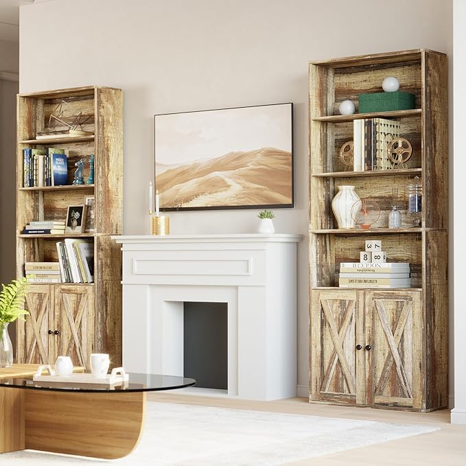 IRONCK Industrial Bookshelves and Bookcases with Doors Set of 2 Floor Standing 6 Shelf Display Storage Shelves 70 in Tall Bookcase for Home Office, Living Room