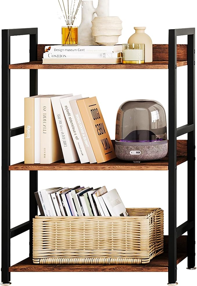 Small Bookshelf for Small Spaces, 3 Tier Small Book Shelf Organizer, Narrow Bookcase for Small Spaces, Small Bookcase for Bedroom, Living Room, Home, Office, 120 lbs Weight Capacity (Brown)