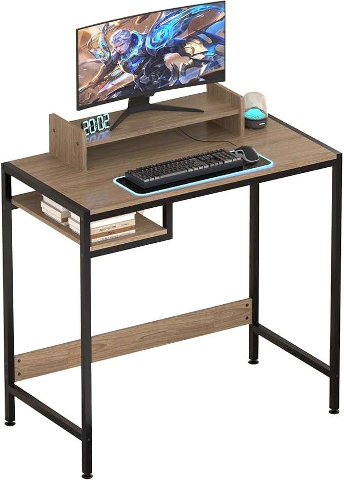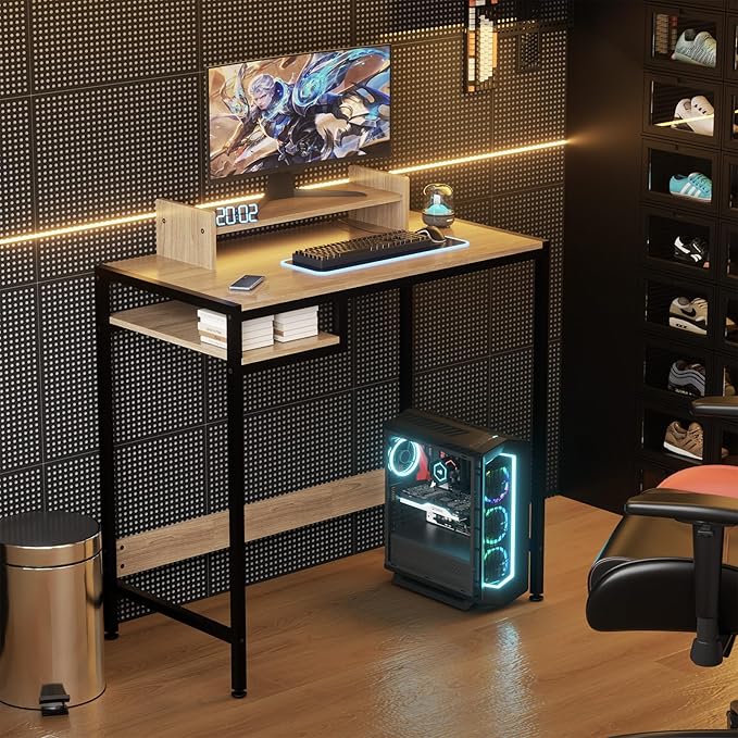 Computer Desk - 32 Inch Home Office Desk with Storage, Gaming Desk with Monitor Stand, Modern Simple Study Table, Adjustable Storage Space, Grey