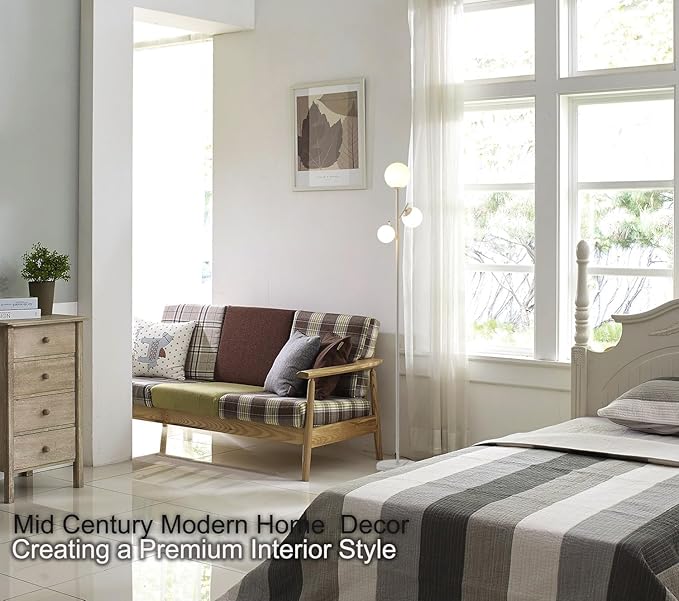 3 Globe Mid Modern Floor Lamp with Orb Frosted Glass Globe and 3000K Warm Light LED Bulbs, Cute Standing Tree Lamp for Living Room, Bedroom, Home & Office - White