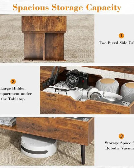 • A Savvy Space Saver: Hidden within the table is a spacious storage compartment, perfect for stowing away remote controls, magazines, or other essentials, keeping your living space neat and organized.