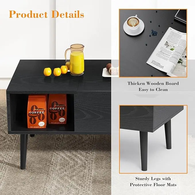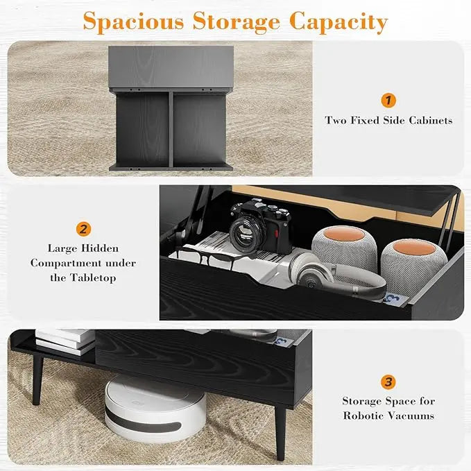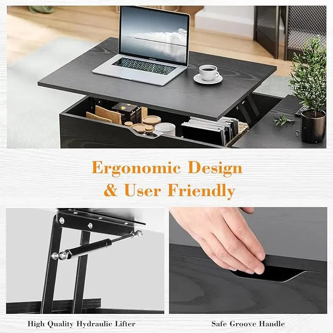 Coffee Table, Lift Top Coffee Tables for Living Room, Small Modern Wooden Center Tables with Storage Shelf and Hidden Compartment