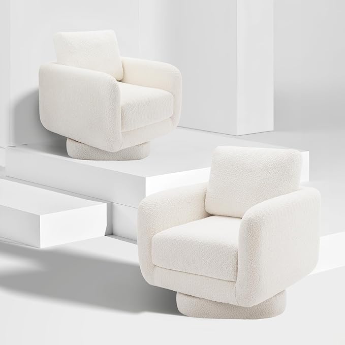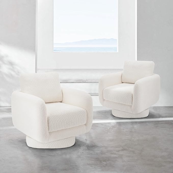 COLAMY Swivel Accent Chairs Set of 2, 32Inches Wide Upholstered Armchair with Plush Back Pillow for Living Room, Modern Sofa Corner Chair for Nursery/Living Room/Bedroom-White