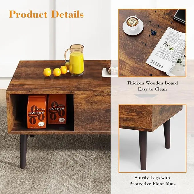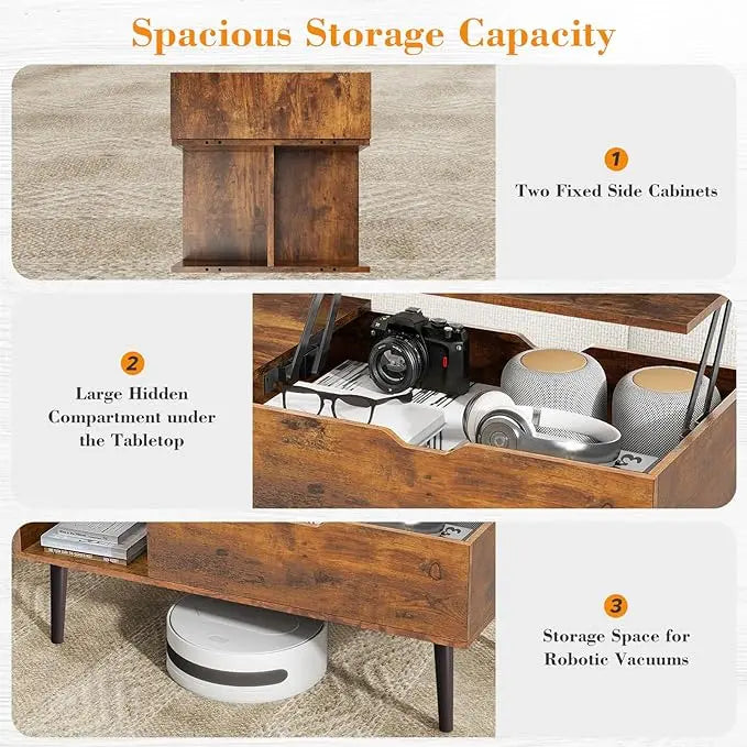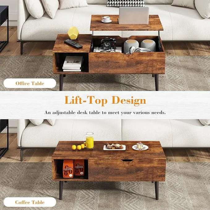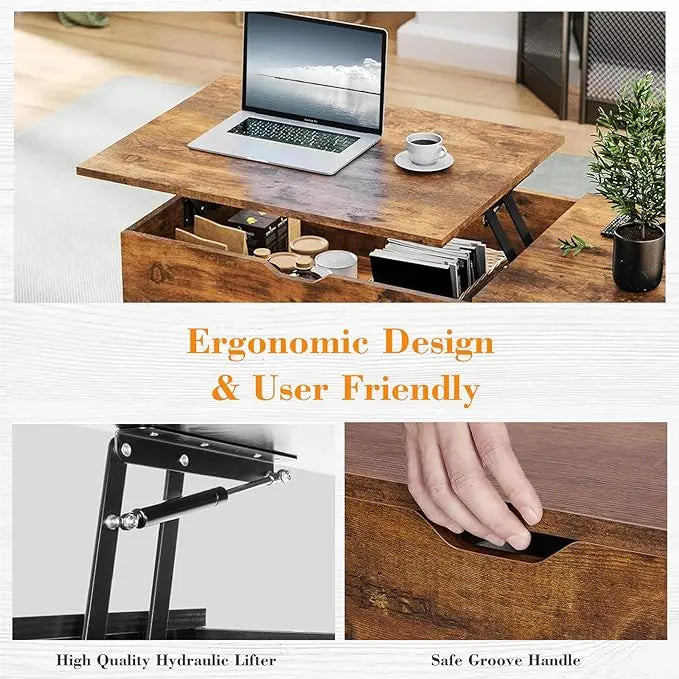 Coffee Table, Lift Top Coffee Tables for Living Room, Small Modern Wooden Center Tables with Storage Shelf and Hidden Compartment