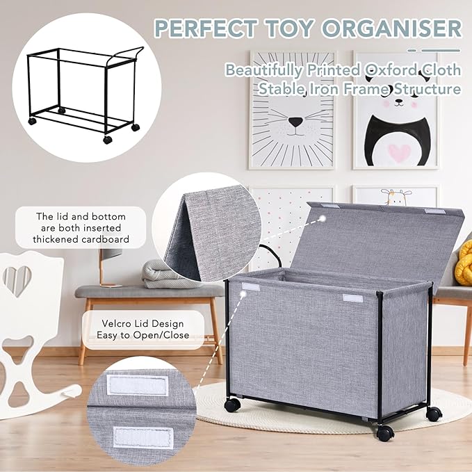 Toy Box Toy Storage - 72L Kids Toy Organizer with Wheels Toy Chest Storage Bins with Lids, Toy Boxes for Girls Boys, Stuffed Animals, Clothes, Bedroom, Living Room