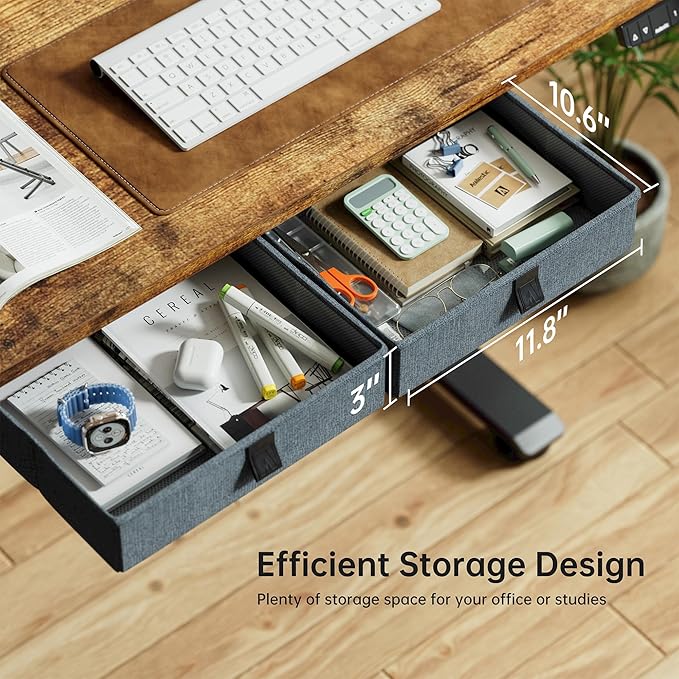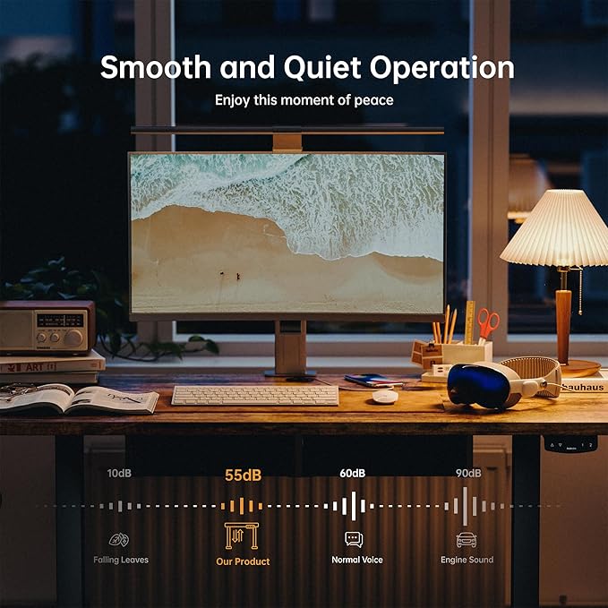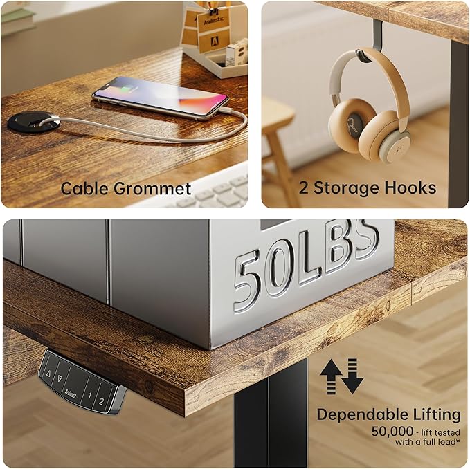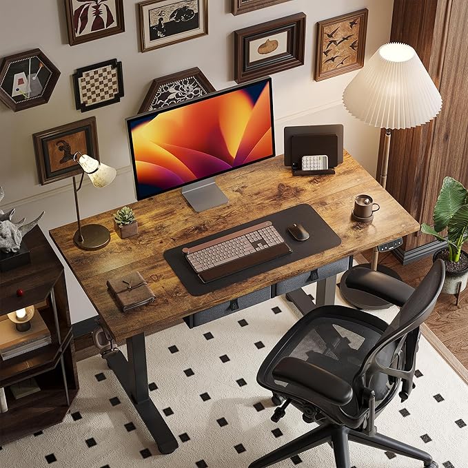 Height Adjustable Desk with Keyboard Tray, 55 x 24 Inches Electric Standing Desk, Stand up Computer Table with Memory Preset, Dark Brown, Splice Board