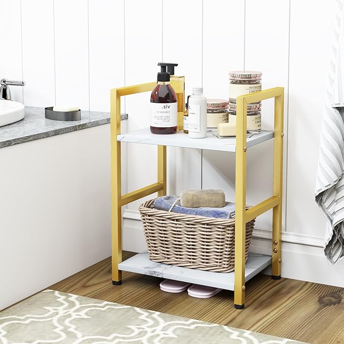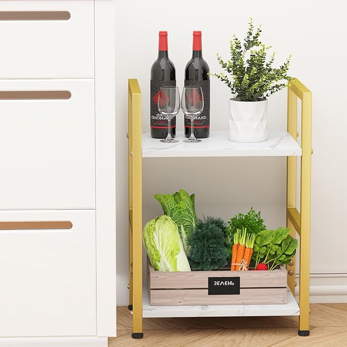 Small Bookshelf for Small Space, 2 Tier Bookcase Narrow Book Case Storage Organizer Book Shelf for Living Room, Bedroom and Office, Easy Assembly(2 Tier,Gold)