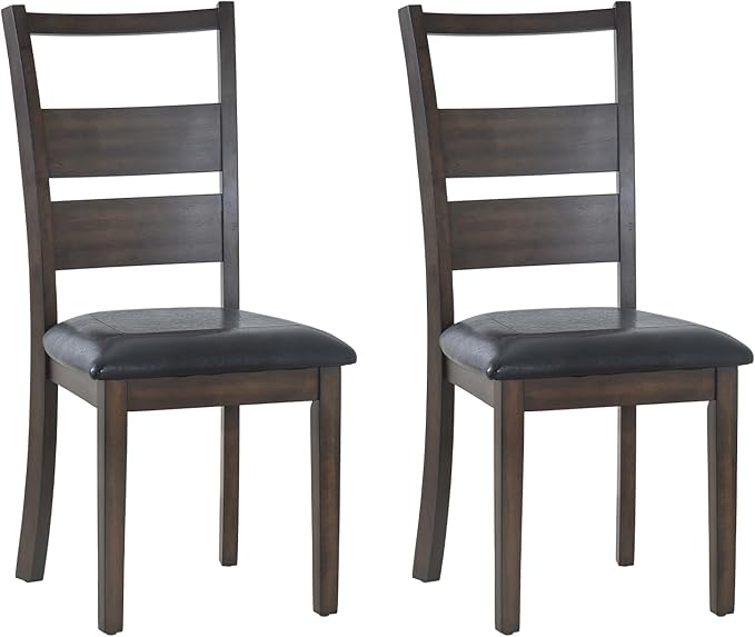 COLAMY Upholstered Dining Chairs Set of 2, PU Leather Dining Room Kitchen Side Chair with Ladder High Back and Adjustable Foot Pegs - Dark Brown