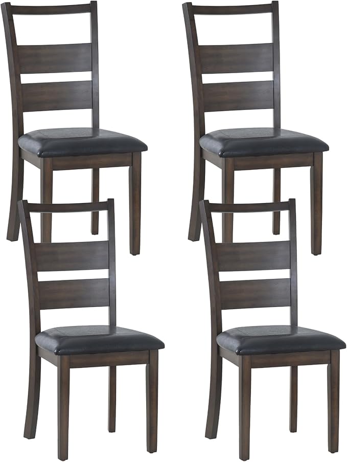 COLAMY Upholstered Dining Chairs Set of 4, PU Leather Dining Room Kitchen Side Chair with Ladder High Back and Adjustable Foot Pegs - Dark Brown